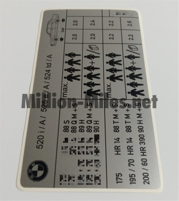 Tire pressure REPLICA Reviews There are no reviews yet. Be the first to review “BMW E28 520i / A/ 525e / A / 524td / A #0080”Cancel ReplyYour email address will not be published. Required fields are marked *Your rating * Rate… Perfect Good Average Not that bad Very poor Name *Email *Your review * I accept the Privacy Policy Save my name, email, and website in this browser for the next time I comment. Submit