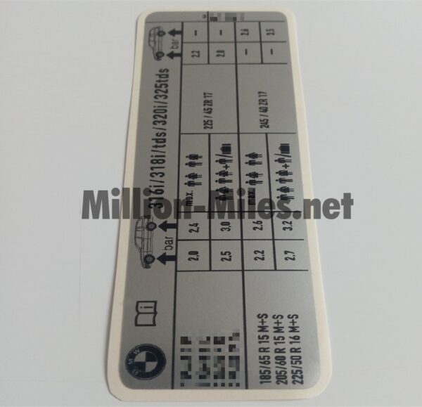Home Stickers BMW Pieces Bodywork Tire pressure BMW E36 316i / 318i / tds / 320i / 325 tds Touring #0023 🔍 BMW E36 316i / 318i / tds / 320i / 325 tds Touring #0023£ 4.00 BMW E36 316i / 318i / tds / 320i / 325 tds Touring #0023 quantity Add to basket Category: Tire pressure Tag: BMW E36 316i / 318i / tds / 329i / 325 tds Touring Description Reviews (0) Tire pressure REPLICA 15” / 16” Reviews There are no reviews yet. Be the first to review “BMW E36 316i / 318i / tds / 320i / 325 tds Touring #0023”Cancel ReplyYour email address will not be published. Required fields are marked *Your rating * Rate… Perfect Good Average Not that bad Very poor Name *Email *Your review * I accept the Privacy Policy Save my name, email, and website in this browser for the next time I comment. Submit Related products BMW E36 316i / 318i #0013 £ 3.50 Tire pressureAdd to basket BMW E36 325i / 328i #0015 £ 4.00 Tire pressureAdd to basket BMW E36 318is Long #0004 £ 3.50 Tire pressureAdd to basket BMW E36 318i / 320i / 323i / 325i / 328i Cabrio #0020 £ 4.00 Tire pressureAdd to basket