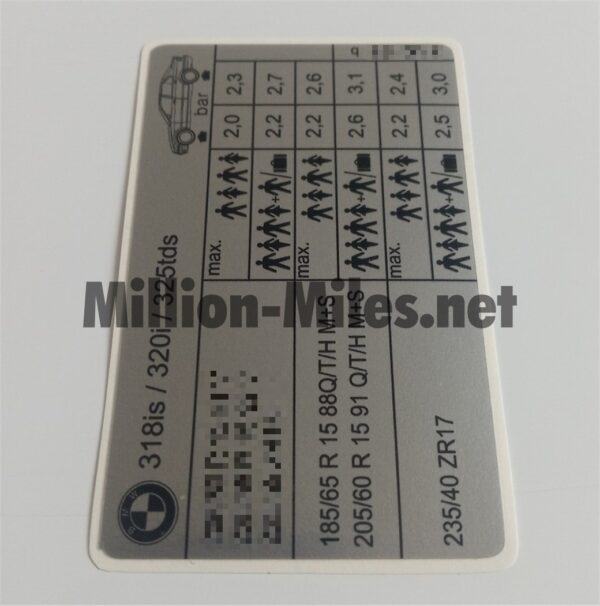 Tire pressure REPLICA Reviews There are no reviews yet. Be the first to review “BMW E36 318is / 320i / 325tds #0029”Cancel ReplyYour email address will not be published. Required fields are marked *Your rating * Rate… Perfect Good Average Not that bad Very poor Name *Email *Your review * I accept the Privacy Policy Save my name, email, and website in this browser for the next time I comment. Submit