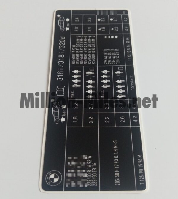 Tire pressure REPLICA Reviews There are no reviews yet. Be the first to review “BMW E46 316i / 318i / 320d #0037”Cancel ReplyYour email address will not be published. Required fields are marked *Your rating * Rate… Perfect Good Average Not that bad Very poor Name *Email *Your review * I accept the Privacy Policy Save my name, email, and website in this browser for the next time I comment. Submit