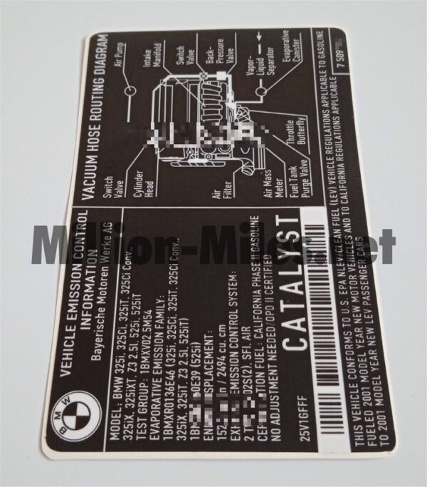Home Stickers BMW Pieces Engine Bay BMW Emission Control 2001 E46 E39 Z3 2.5L #0674 🔍 BMW Emission Control 2001 E46 E39 Z3 2.5L #0674£ 7.00 BMW Emission Control 2001 E46 E39 Z3 2.5L #0674 quantity Add to basket Category: Engine Bay Tag: BMW Emission Control 2001 E46 E39 Z3 2.5L Description Reviews (0) BMW Emission Control 2001 E46 E39 Z3 2.5L Reviews There are no reviews yet. Be the first to review “BMW Emission Control 2001 E46 E39 Z3 2.5L #0674”Cancel ReplyYour email address will not be published. Required fields are marked *Your rating * Rate… Perfect Good Average Not that bad Very poor Name *Email *Your review * I accept the Privacy Policy Save my name, email, and website in this browser for the next time I comment. Submit Related products BMW Genuine Parts US #0529 £ 3.50 Engine BayAdd to basket BMW Original Teile #0519 £ 2.00 Engine BayAdd to basket BMW Original Teile EUR #0530 £ 3.50 Engine BayAdd to basket BMW Emission control 1998 E36 / E39 US #0542 £ 7.00 Engine BayAdd to basket
