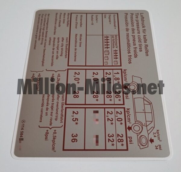 MB Tire pressure W114 / W115 Reviews There are no reviews yet. Be the first to review “MB Tire pressure W114 / W115 #0326”Cancel ReplyYour email address will not be published. Required fields are marked *Your rating * Rate… Perfect Good Average Not that bad Very poor Name *Email *Your review * I accept the Privacy Policy Save my name, email, and website in this browser for the next time I comment. Submit