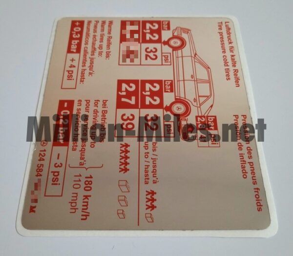 MB Tire pressure W124 Reviews There are no reviews yet. Be the first to review “MB Tire pressure W124 #0292”Cancel ReplyYour email address will not be published. Required fields are marked *Your rating * Rate… Perfect Good Average Not that bad Very poor Name *Email *Your review * I accept the Privacy Policy Save my name, email, and website in this browser for the next time I comment. Submit