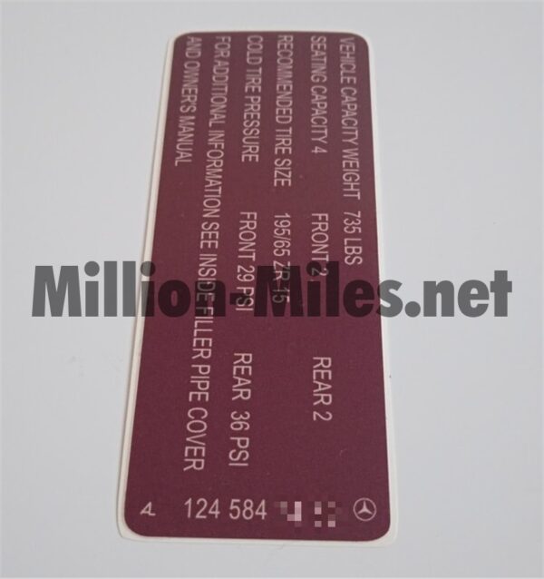 MB W124 Tire Pressure US Reviews There are no reviews yet. Be the first to review “MB W124 Tire Pressure US #0436”Cancel ReplyYour email address will not be published. Required fields are marked *Your rating * Rate… Perfect Good Average Not that bad Very poor Name *Email *Your review * I accept the Privacy Policy Save my name, email, and website in this browser for the next time I comment. Submit